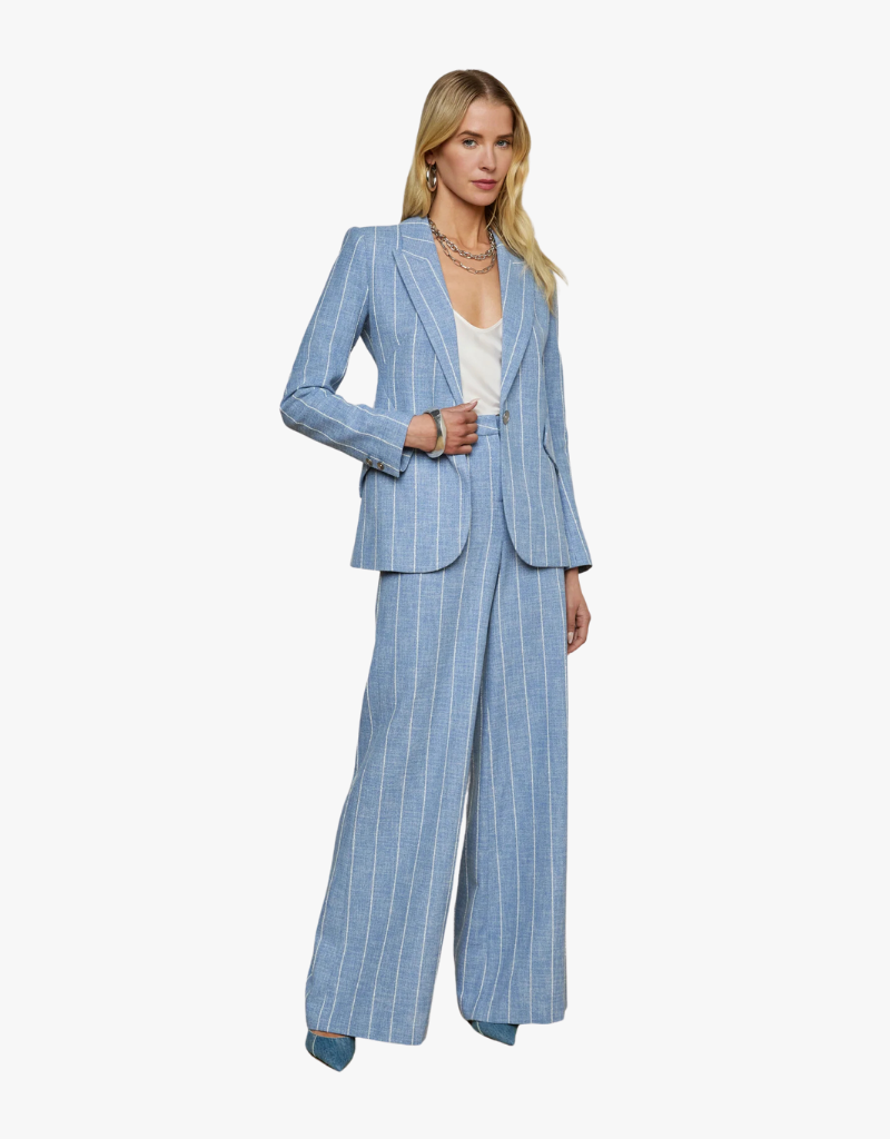 L'agence Kenzie Double Breasted Blazer in Midnight & Red Pinstripe
