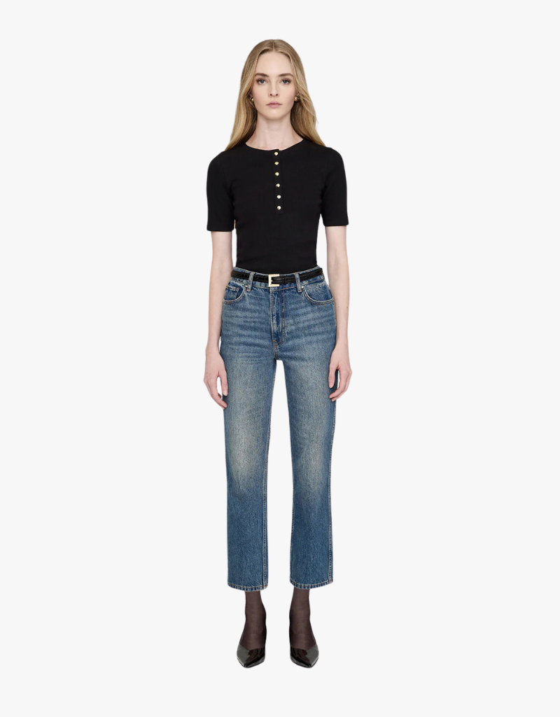 Ulla Johnson Salima Short Sleeve Knit Top in Noir
