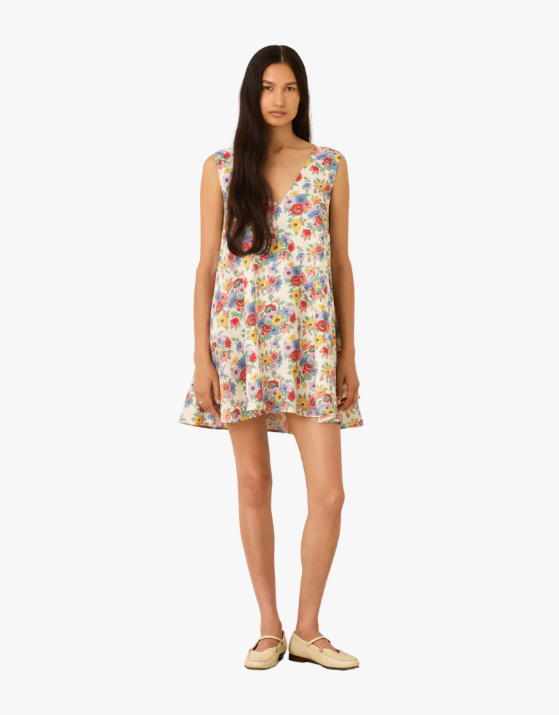 Tanya Taylor Rosabeth Dress in Maritime Blue & Cream Multi