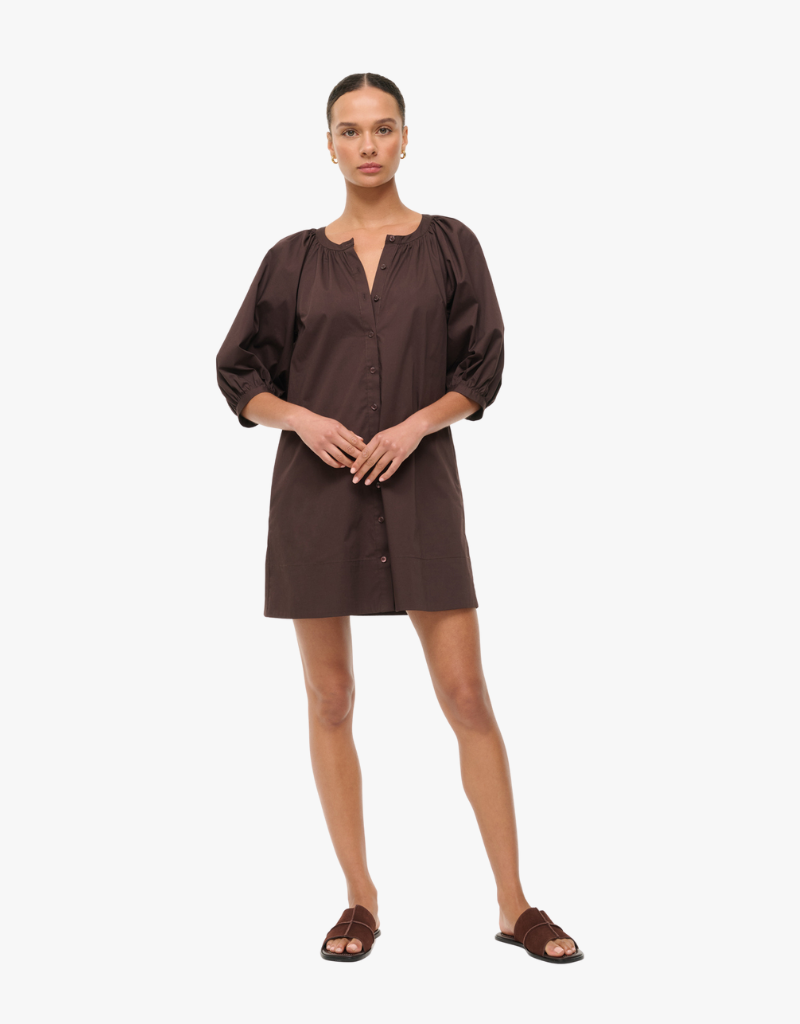 Tanya Taylor Long Sleeve Blaire Dress in Mahogany & Soft Carmine Multi