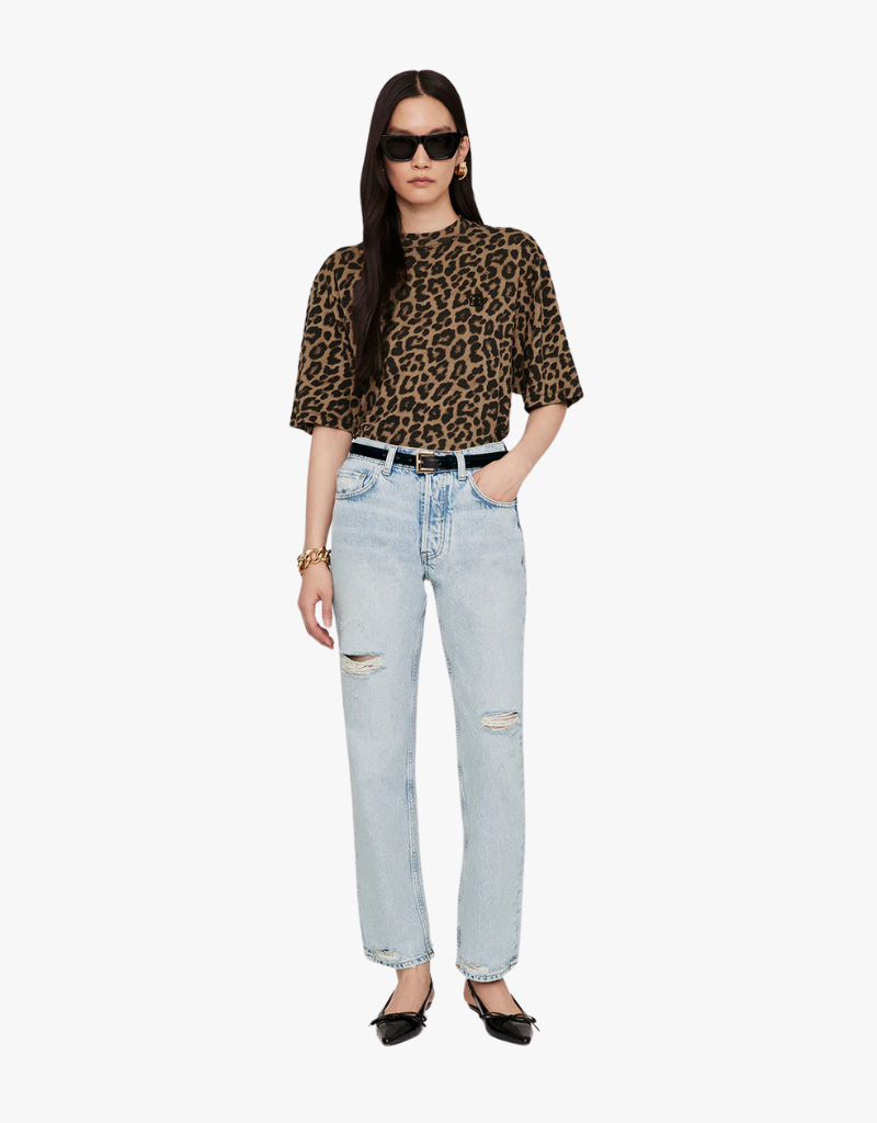 Anine Bing Sylvie Long Sleeve Tee in Black & Brown Leopard
