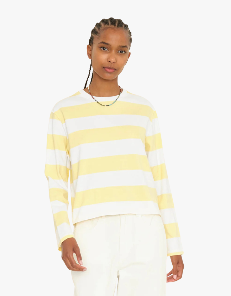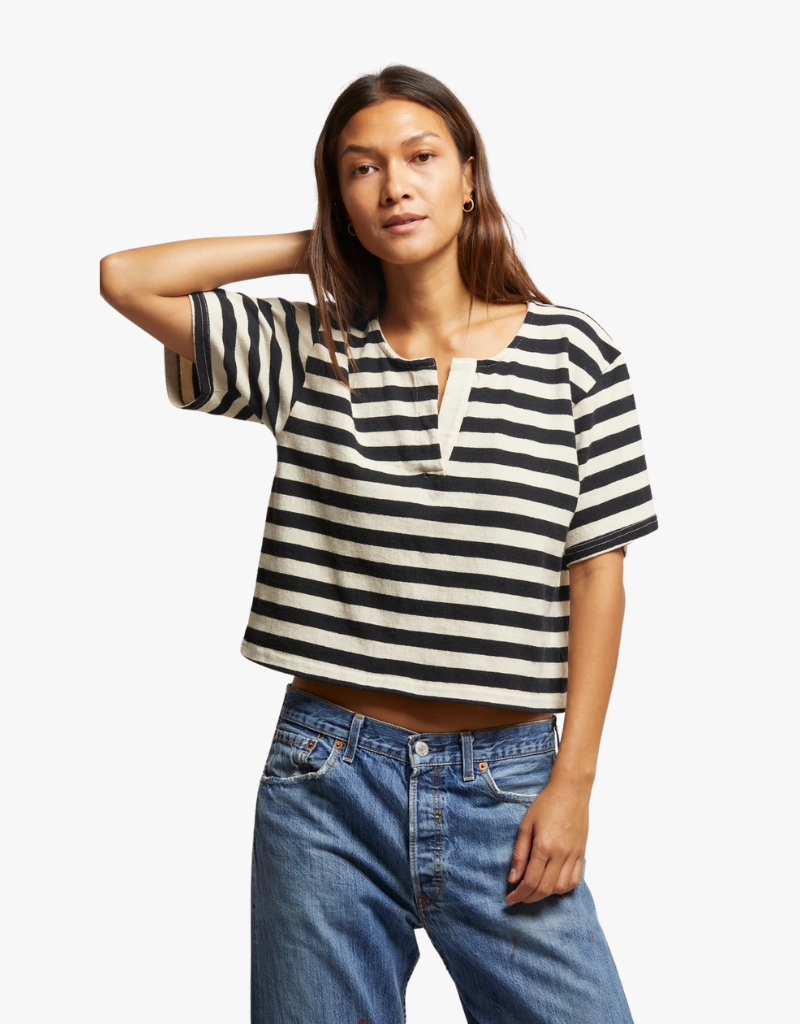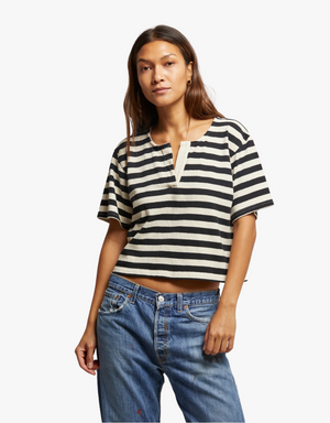 Perfect White Tee Jamie Stripe Jersey Crewneck Long Sleeve in Ivory & Black Stripe
