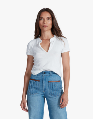 Perfect White Tee Amee Luxe Rib Long Sleeve Button Polo in Sugar