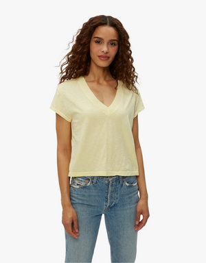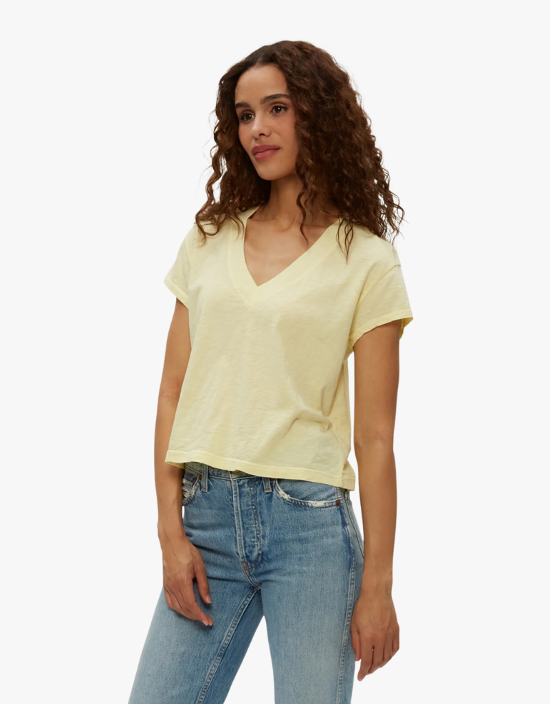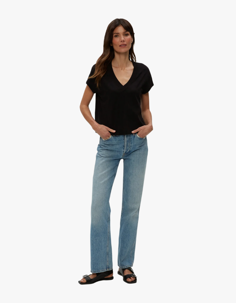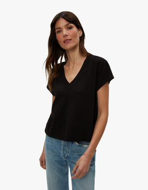 Perfect White Tee Hendrix Cotton Short Sleeve Boxy V Neck Tee in Charcoal
