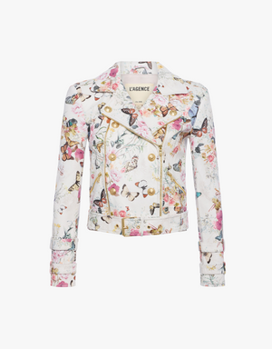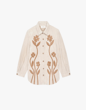 The Great The Floral Applique Suede Jacket in Desert Tan