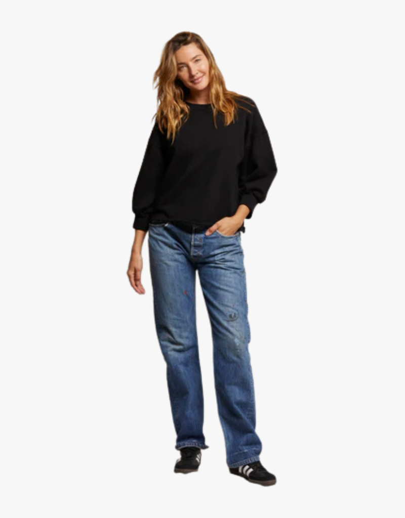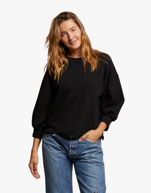 Perfect White Tee Ziggy Inside Out Fleece Long Sleeve Skrunken Crewneck Sweatshirt in True Black