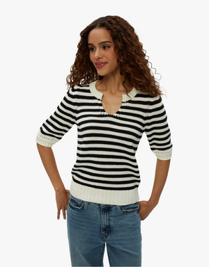 Michael Stars Aura Striped Crew Pullover in Nocturnal Combo