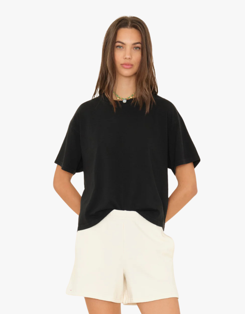 Perfect White Tee Hendrix Cotton Short Sleeve Boxy V Neck Tee in Charcoal