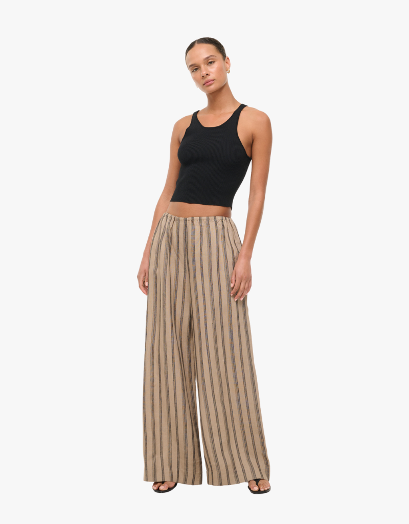 Perfect White Tee Andi Cotton Poplin Stripe Pant in Black Stripe