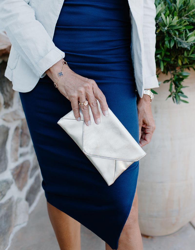 Hammitt Paul Pocket Clutch in Black Press & Brushed Gold with Red Zip