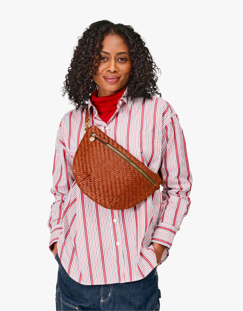 Clare V. Grande Fanny in Tobacco Woven Checker