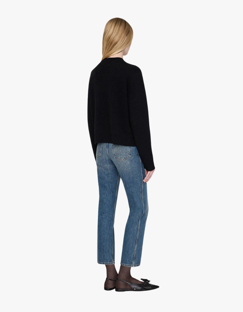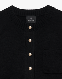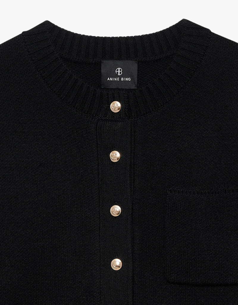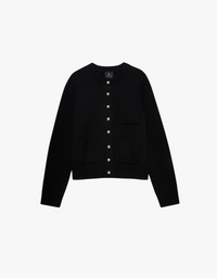 The Jameson Cardigan features a soft wool-cashmere blend in a dense knit. With a slightly cropped, boxy fit, it has a crew neckline, three patch pockets, and gold ANINE BING buttons down the front.