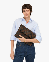 Discover the Carryall Clutch with Tabs in Black & Chocolate Checker—your next essential accessory. Stylish, distinctive, and adaptable. Instantly enhance your look.