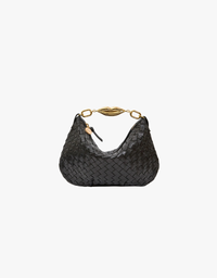 Clare V. Petit Moyen Messenger in Black Woven Diagonal