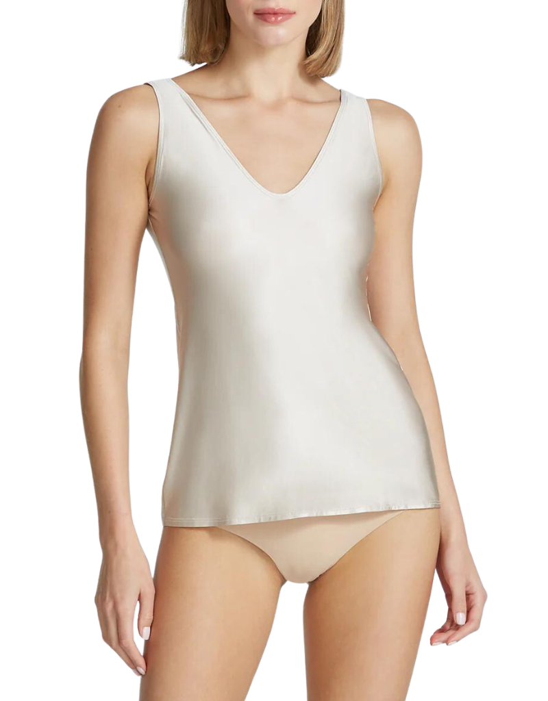 This Commando Faux Silk V-neck Tank is the perfect piece for your wardrobe. Made from a deliciously silky Austrian fabric that feels like a dream, it's a luxurious staple that works equally well alone or paired with your favorite jeans. Be fashion-forward and stylishly comfortable in this essential item.