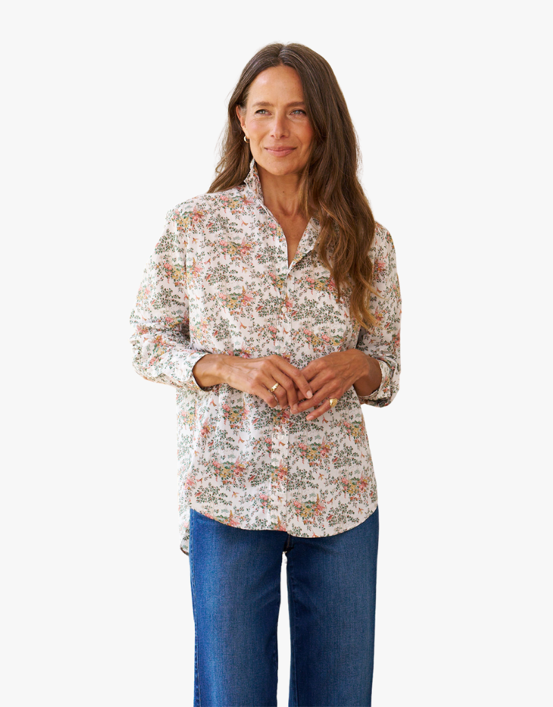 Frank & Eileen "Eileen" Relaxed Button-Up Shirt in Pink Bird Floral (Italian Cotton)