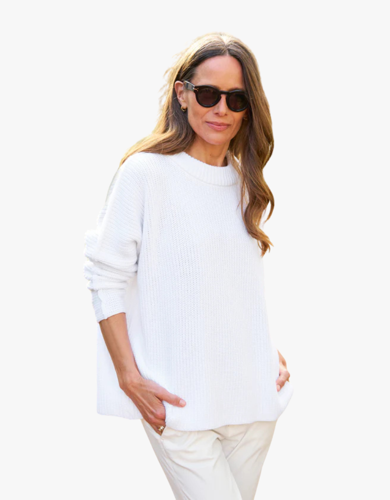 Frank & Eileen Montecito Sweater in White (Italian Cotton Knit)