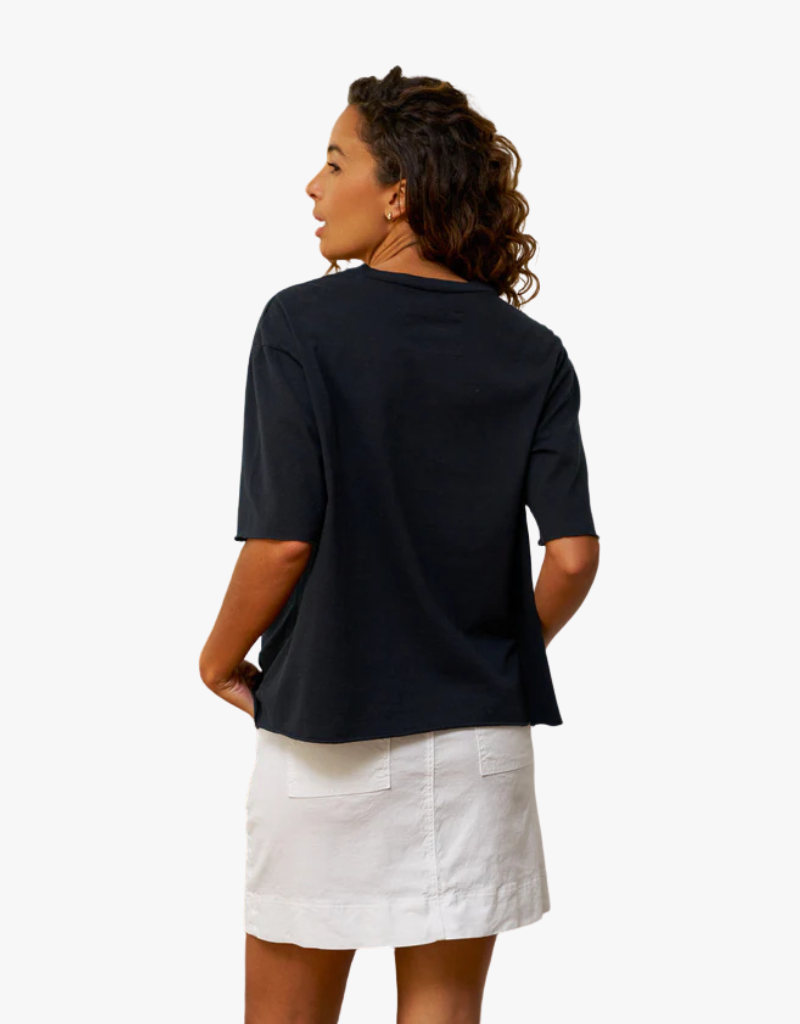 Inspired by Julianne Moore's iconic New York City style, the Perry Crew Short Sleeve Tee delivers effortless Manhattan cool. This relaxed-fit crewneck features a distinctive raw hem that creates a perfectly lived-in look. This co-created House of Frank & Eileen staple captures the understated edge of authentic NYC fashion. Make Perry your go-to tee for that coveted effortless urban style that transitions seamlessly from casual outings to stylish city adventures.
