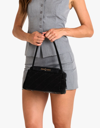 Hammitt Charlotte Flap Medium in Noir Diamond Suede & Gunmetal