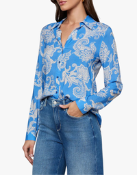 L'agence Holly Long Sleeve Blouse in Regatta Blue & Ivy Two Tone Paisley