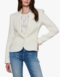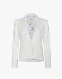This classic single-breasted blazer is designed in a slightly shortened length for a balanced, tailored look. Ideal for petite proportions or styling with high-waisted trousers, the Jennah delivers timeless structure with modern appeal. Reintroduced in a refined ivory tweed for polished versatility.