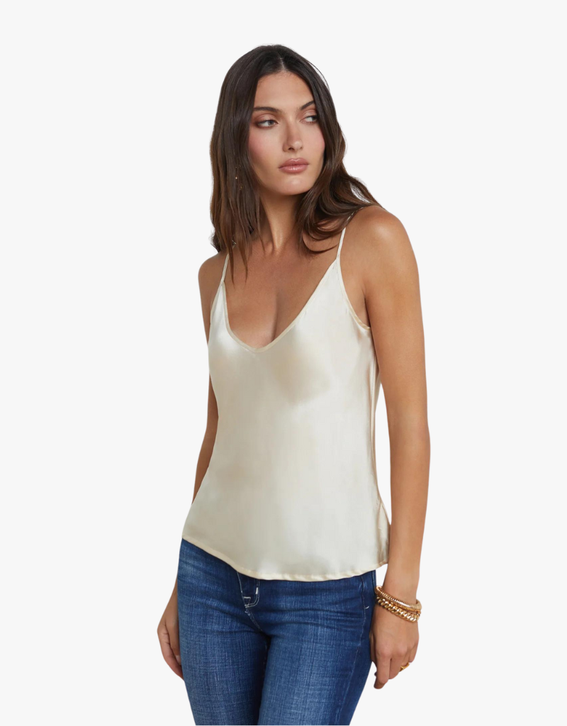 A stunning charmeuse silk camisole awaits you with the Lexi Camisole. Its bias cut will flatter your silhouette! Featuring front-and-back V-necklines and adjustable spaghetti straps. Ideal for wearing solo or as a base layer!