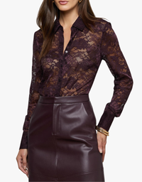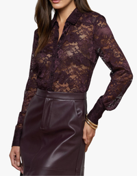 L'agence Maia Lace Button Down Blouse in Dark Malbec