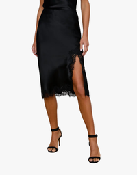 The Tico Lace Midi Skirt by L’AGENCE brings a romantic update to classic silk charmeuse with a thigh-high slit trimmed in eyelash lace. Designed with an elasticized waistband for easy wear, this midi silhouette transitions effortlessly from casual tees to elevated blouses. A standout style debuted in the Spring 2026 NYFW presentation, After Hours.