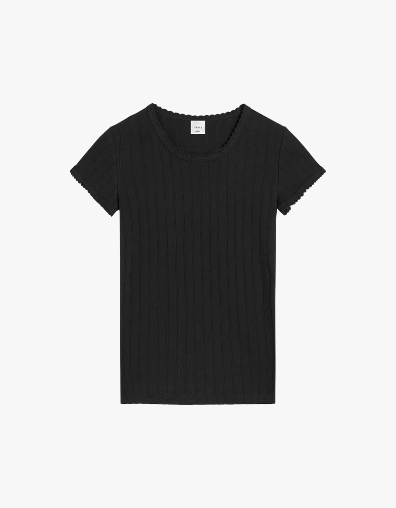 Leset Pointelle Slim Fit Tee in Black