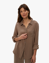 Channeling the classic Oxford button-down, the Ernie Gauze Button Down Shirt is a must-have for your wardrobe. Made with our light and airy Double Gauze fabric, this shirt features a splayed collar, full front button placket, and a front patch pocket. Experience the ease of styling with this versatile top and pair it with anything.
