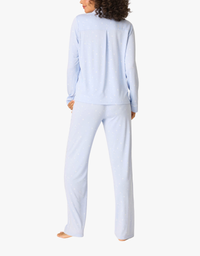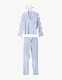 This pajama set is crafted in cloud-soft modal jersey with a dreamy scattered-star print for cozy nights and relaxed mornings. A long-sleeve button-down top with contrast piping pairs with open-leg pants and an elastic waistband, finished with a matching eyemask for a complete set.