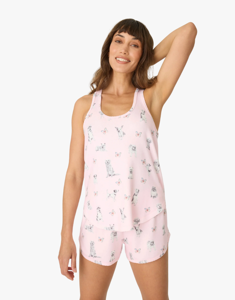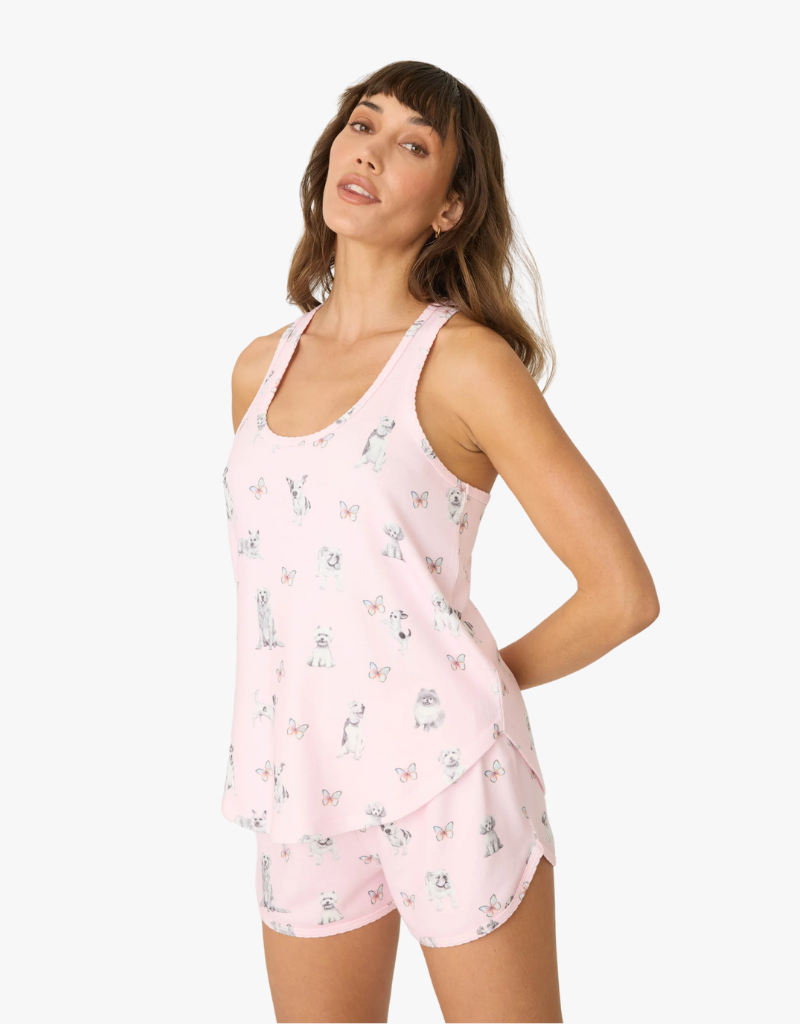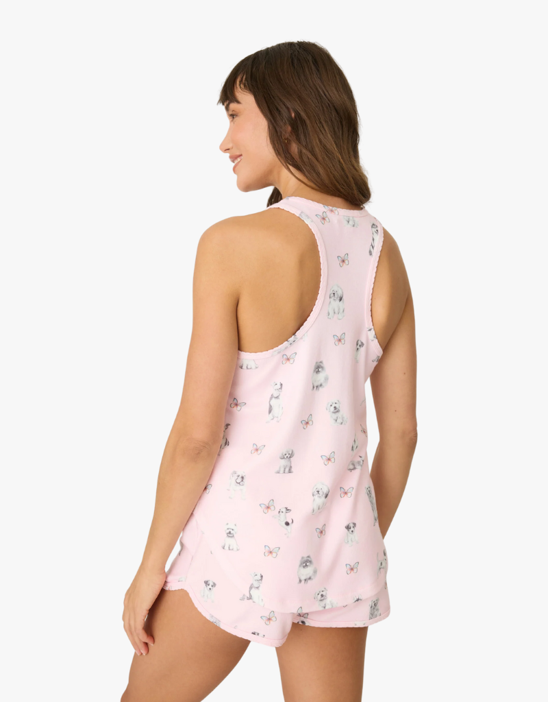 The Butterfly Grove Tank Top is a must-have for puppy lovers. Crafted from ultra-soft jersey, this relaxed-fit racerback tank is playful and light. The pastel pink print with puppies and butterflies adds joy. Complete the look with matching shorts!