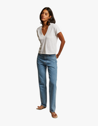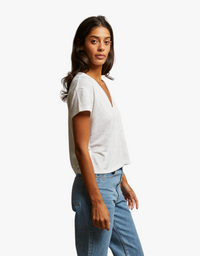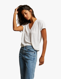 Perfect White Tee Rosie Linen Jersey V-Neck Tee in Oatmeal