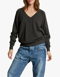 Perfect White Tee Sinead Relaxed French Terry V Neck Sweatshirt in Vintage Black
