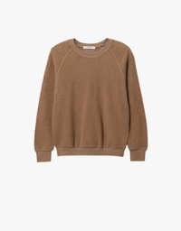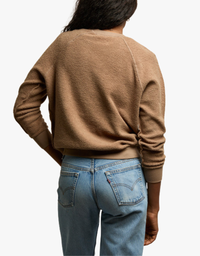 Perfect White Tee Ziggy Inside Out Fleece Long Sleeve Shrunken Crewneck Sweatshirt in Mocha