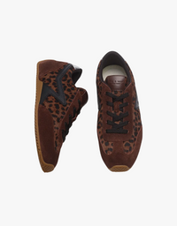 Dark chocolate leopard print defines the Retro Ultra slim runner sneakers, made from a blend of suede and leopard-print calf hair. This is the slimmest version of a classic vintage trainer. Featuring soft suede and sleek leather accents, these lace-up sneakers offer a refined look.
