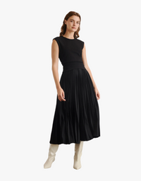 Effortlessly stylish, the Carly Dress is an essential piece for this season. Crafted from premium scuba crepe, it features a sleek shape with side ruching at the waist that enhances your figure, paired with a graceful pleated skirt that moves beautifully with every step.