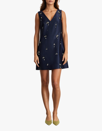 The Halston Dress is a standout luster satin mini featuring a sophisticated v-neck and a playful shift silhouette. Drenched in all-over crystal drop embellishment for an effortless evening shine, it’s the ultimate event piece—shop yours now.