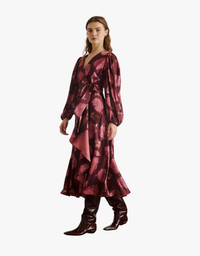 Tanya Taylor Long Sleeve Blaire Dress in Mahogany & Soft Carmine Multi