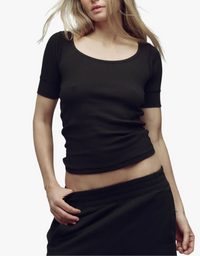 The Baby Rib Ballet Tee is a fresh take on vintage 1930s cotton undershirts, reimagined with a feminine edge. It features a scooped neckline with delicate binding, set-in short sleeves, and a wide, fine rib that adds structure and softness. Made from lightweight baby rib with a close-to-body fit and just the right amount of stretch, it’s as comfortable as it is timeless.