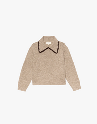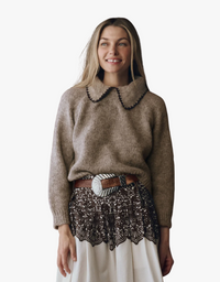 The Great The Crochet Collar Pullover in Oat with Brown Oat
