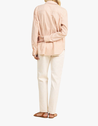 The Emilia Oversized Shirt is designed as a relaxed button-down made for long-lasting wardrobe wear. An extra-oversized fit and antique white buttons create an easy, lived-in look that softens with every wash. Lightweight coastal cotton keeps the feel breathable and ideal for warm-weather layering.