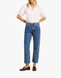 The Mira Blouse is designed with short puff sleeves, a straight hemline, and petite pintucks that add subtle texture and handcrafted charm. A slightly cropped silhouette keeps the look airy and effortless for warm-weather layering.