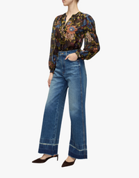 The Ashlynn blouse returns as a favorite with its striking floral design. Crafted from luxurious stretch silk, it showcases delicate front pleats and light, flowing blouson sleeves. Perfect for everyday wear, tuck it into your favorite jeans and add a cozy sweater for a stylish fall ensemble.