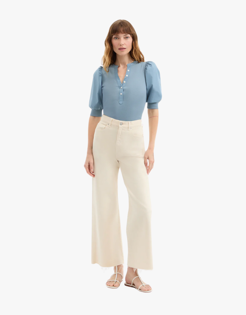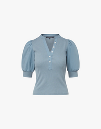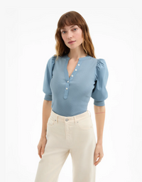 Experience the charm of the Coralee Puff-Sleeve Top, designed to captivate with its graceful split-V neckline and stylish button details. This refined blouse effortlessly elevates your look, making it an ideal choice for every event.