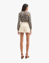 Effortless with a dose of refined femininity. Expertly crafted from 100% silk, the Linds blouse boasts a relaxed fit, gentle blouson sleeves, a self-tie neckline, and romantic blue and green pastel florals. Pair with jeans to elevate the everyday or play up the blush notes in the print with pink pants.