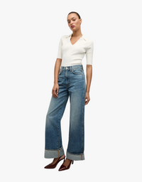 Veronica Beard Taylor Cuffed Wide Leg Jeans in Rebel Stone