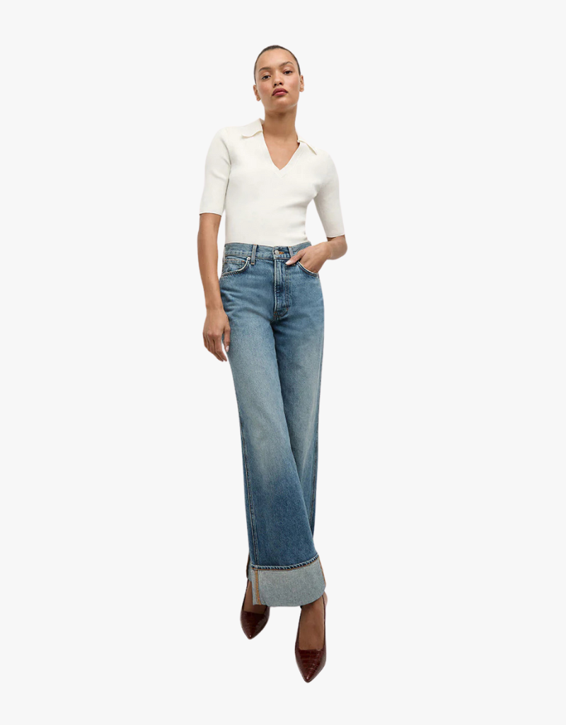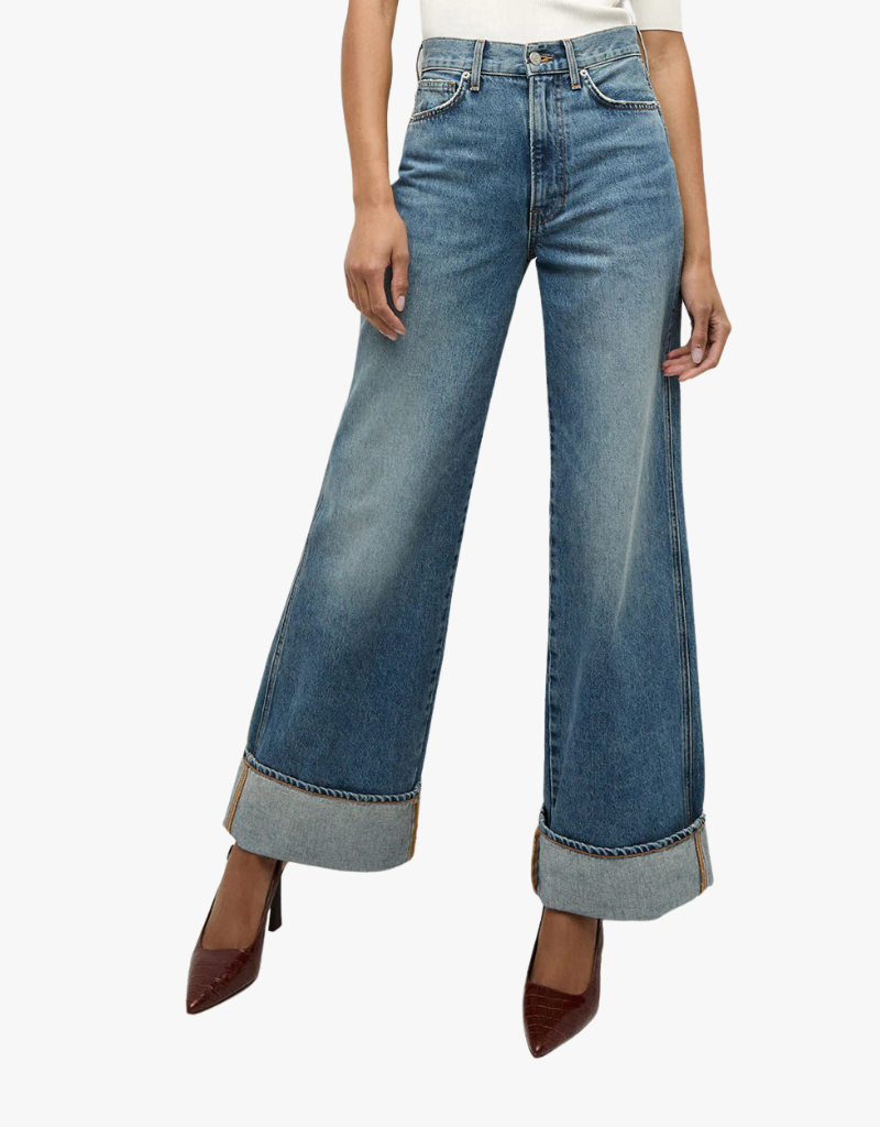 Elevate your style with the Taylor Cuffed Wide Leg Jeans. Made from authentic Japanese denim, these high-rise jeans feature an oversized cuff and flattering wide-leg fit. Dress them up or down for any occasion!