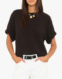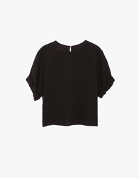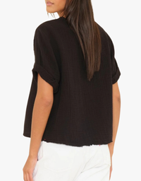 Carson popover top in soft washed cotton gauze with a gently crinkled texture. Scoop neck, rolled sleeves, and keyhole button-back detail. Effortless and comfortable. Add to your collection today.