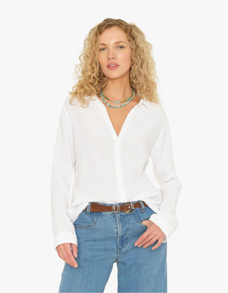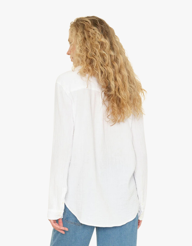 The Scout Shirt is crafted from washed double-faced cotton gauze, which offers a soft, crinkled texture. Its lightweight design with a shirttail hem and pleated back yoke makes it a wardrobe must-have.
